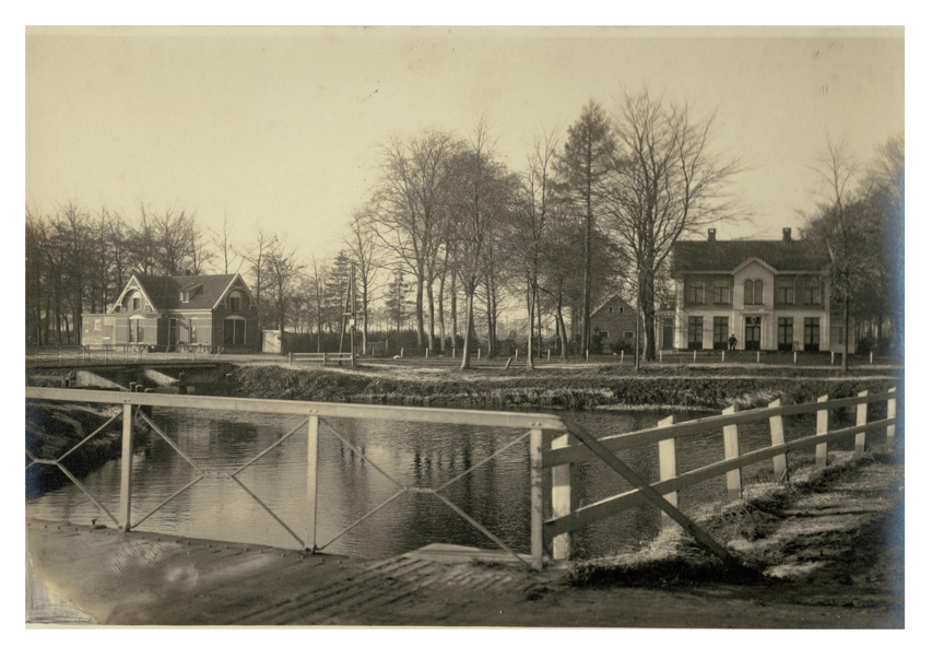 Rechts villa La Paix die werd gebouwd in opdracht van de Drentse Landontginning Maatschappij en gereed was in 1875. In 1909 nam Van der Griendt het pand over. In 1971 kocht de familie Heerma van Voss de villa La Paix.